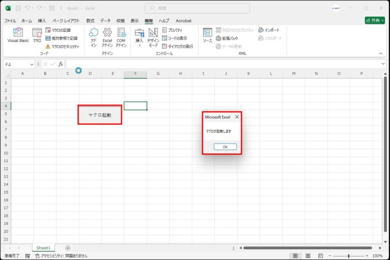 - マクロを起動させる。