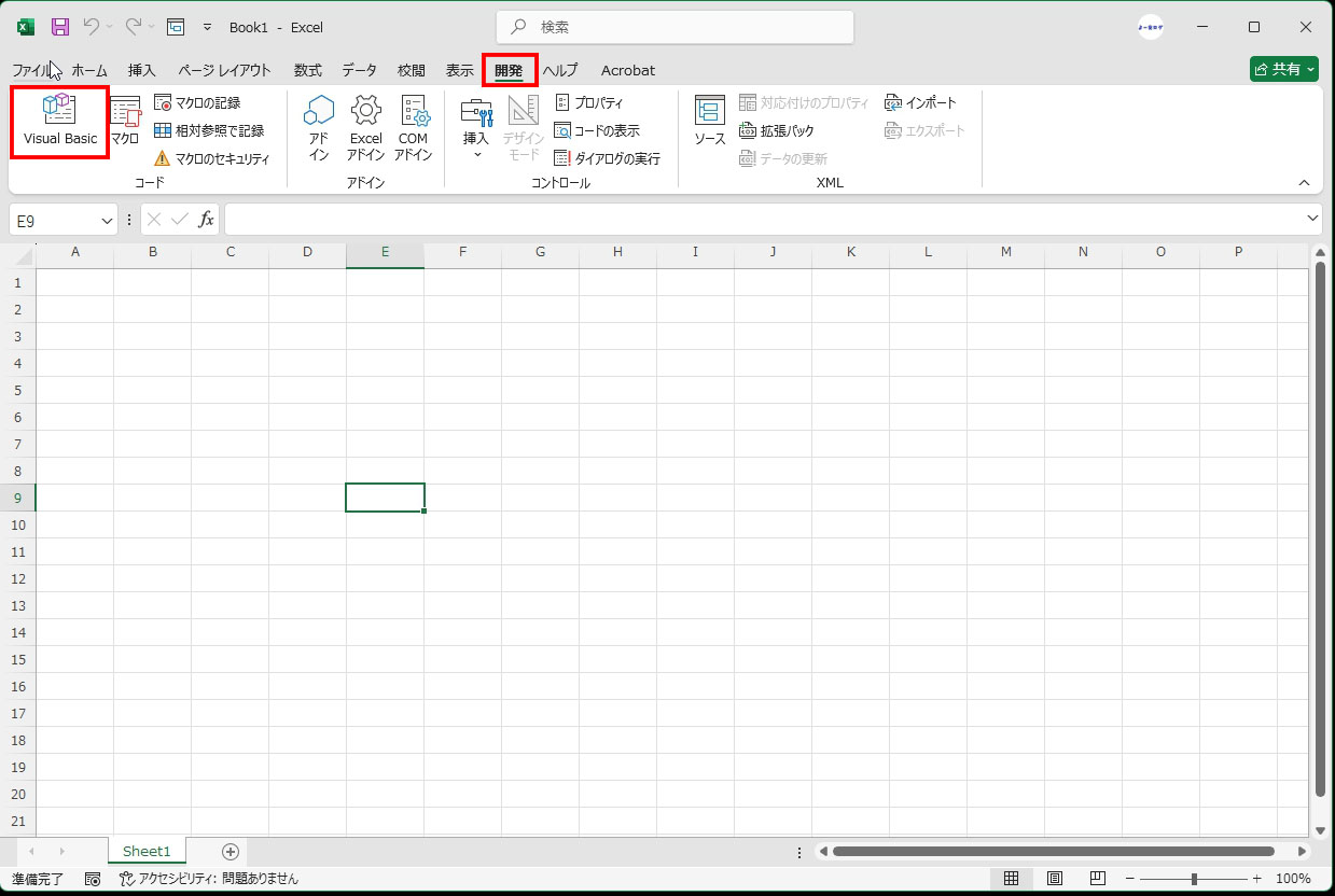 [開発] タブにある [Visual Basic] をクリック。